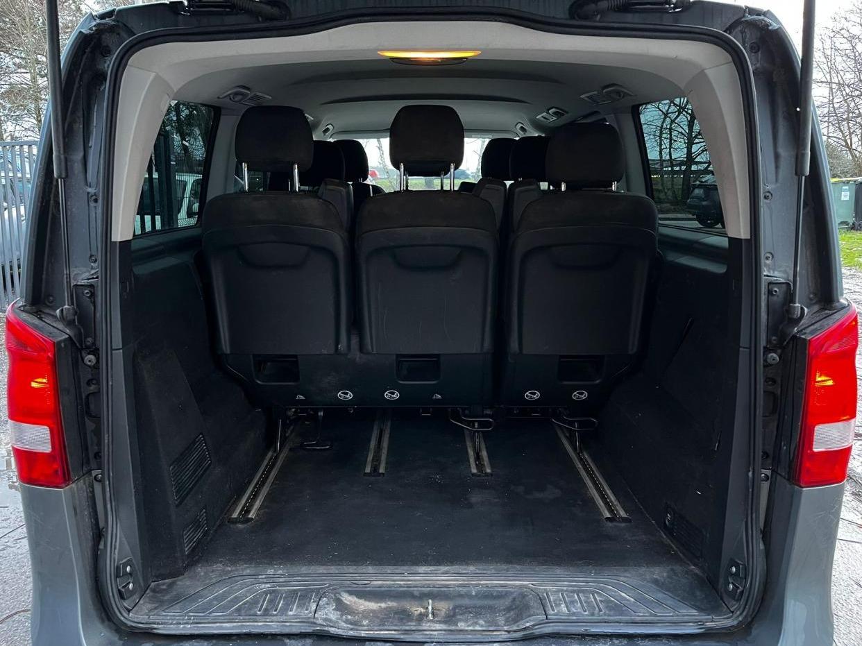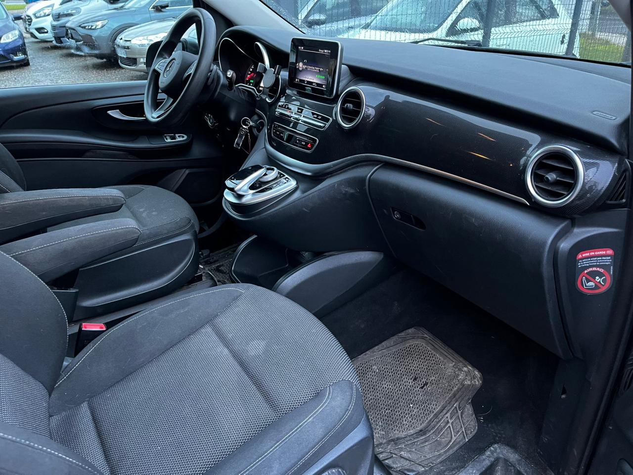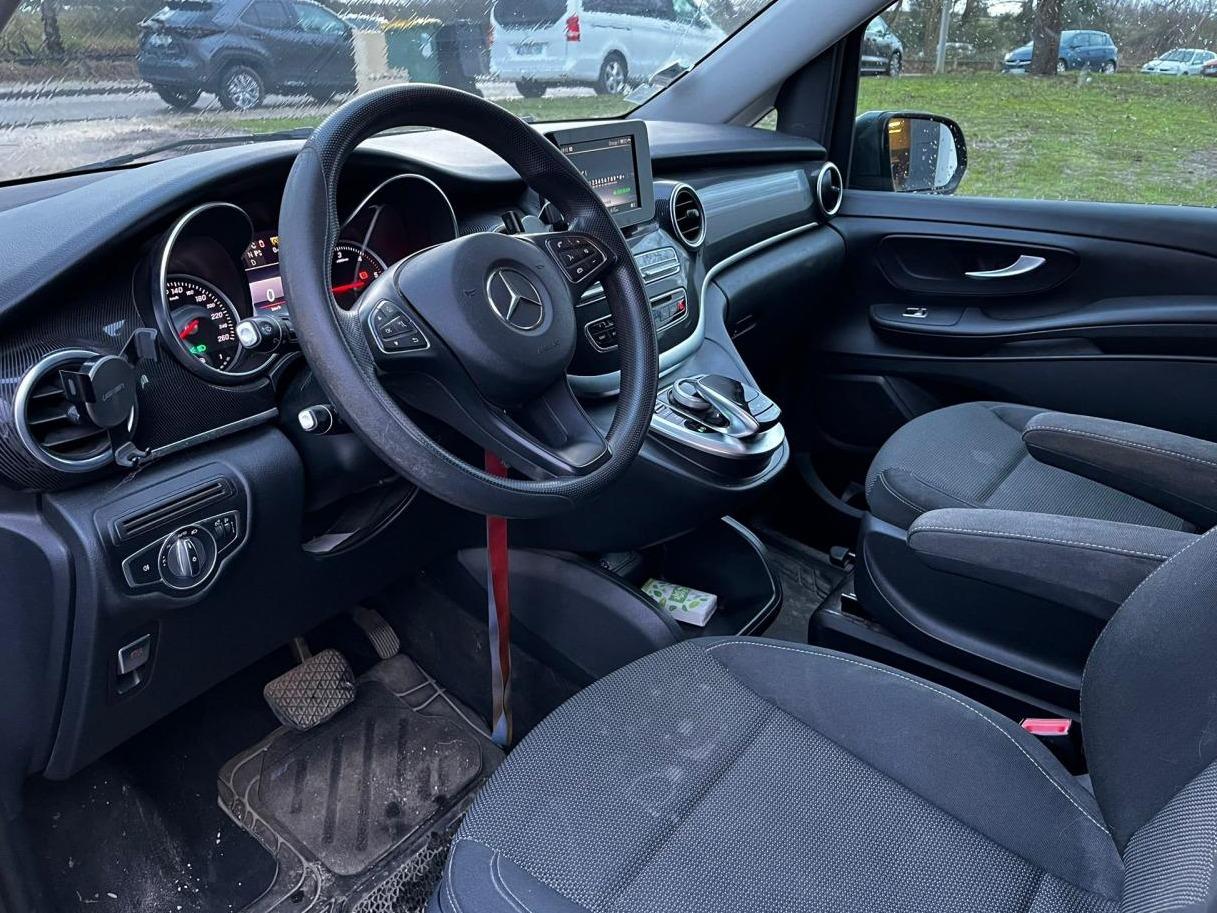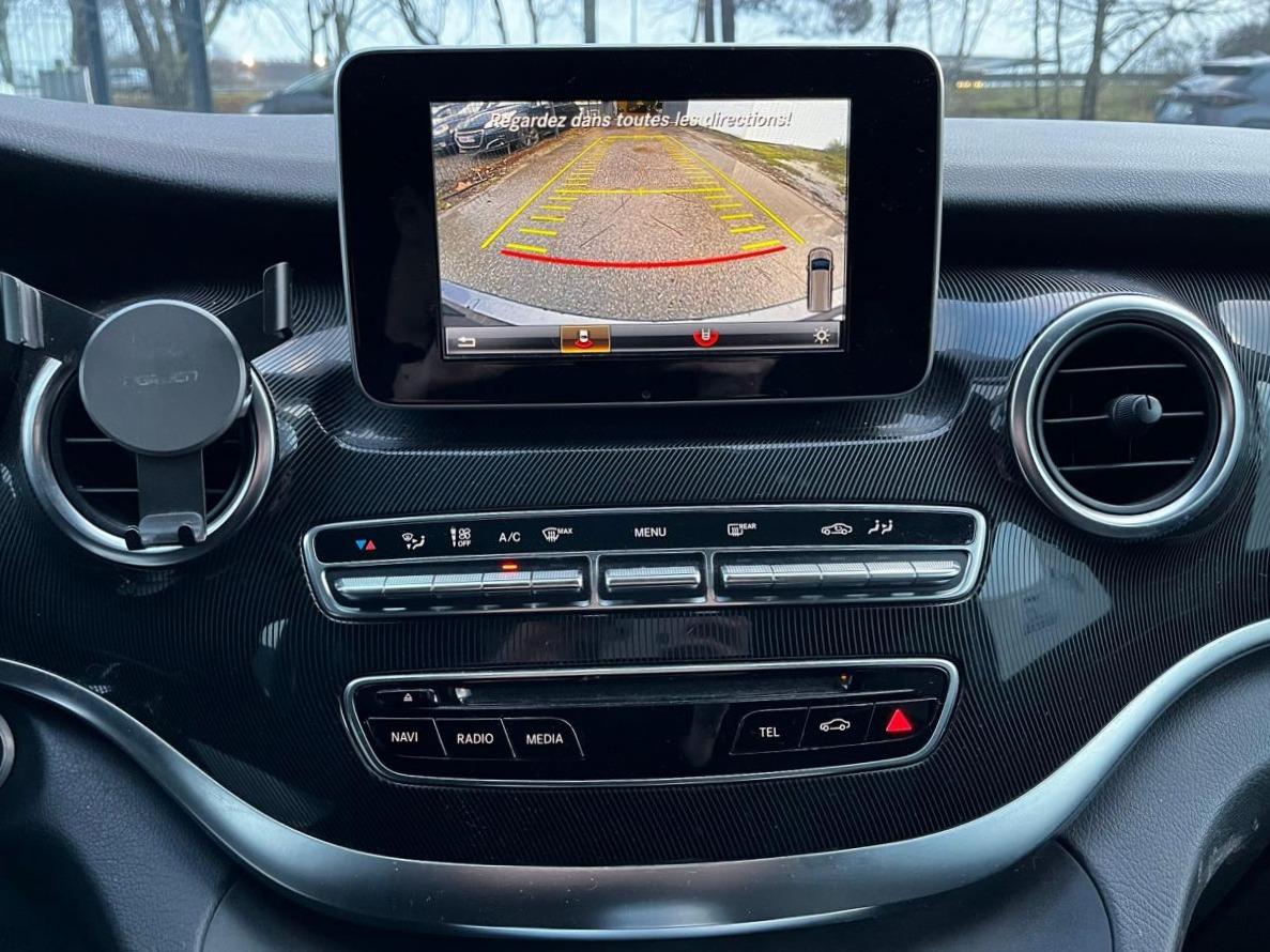 ABS (antiblocage de roues) et BAS (freinage d'urgence assisté)ADAPTIVE BRAKE avec aide au démarrage en côteAllumage automatique des projecteursAPA (Aide au Parking Active) avec caméra 360° : système d'aide au stationnement avec radar de proximité avant et arrière, fonction manœuvres automatiques et 4 caméras (avant, arrière et côtés)Attelage : pré-équipement électrique pour l'installation ultérieure d'un attelageAttention Assist : système de détection de somnolenceBaguettes de seuils de portes éclairées avec monogramme Mercedes-BenzBoîte à gants verrouillableBoîte de vitesses automatique à 7 rapports 7G-TRONIC PLUS avec fonction "Stop/Start ECO"Caméra de recul avec lignes de guidageClé design avec insert chromé, avec ouverture confortClimatisation additionnelle arrièreClimatisation automatique THERMOTRONIC à 2 zonesColonne de direction réglable manuellement en hauteur et en profondeurConciergerie Mercedes me connectCROSSWIND ASSIST : système de correction de trajectoire en cas de vent latéralESP (régulation de comportement dynamique) avec ASR (antipatinage)Hayon électrique EASY-PACKInserts décoratifs en aluminium brosséISOFIX : fixation sièges-enfants arrièreLevier sélecteur DIRECT SELECT avec palettes de commande au volantPack BlueEFFICIENCYPack d'assistance de trajectoirePack Design AvantgardePack rétroviseursPack Technologie PlusPeinture métalliséePorte latérale coulissante droitePorte latérale coulissante gauchePrise 12V à l'avantRadio Audio 20 avec écran couleur 17,8 cm (7"), lecteur CD, interface média USB, Aux, connexion BluetoothRétroviseurs extérieurs à réglages électriquesSièges avant confort réglables en hauteur avec un accoudoirSièges conducteur et passager avant à réglage lombaireSièges individuels arrière (x4) avec deux accoudoirsSuspension et train de roulement sport (-15 mm)Système de rails pour l'ancrage des siègesTEMPOMAT (régulateur de vitesse) et SPEEDTRONIC (limiteur de vitesse)Toit panoramique vitré électrique basculant et coulissantTOUCHPAD : pavé tactile permettant la navigation dans les menus audio, téléphone et médiaVolant gainé cuirVolant multifonction