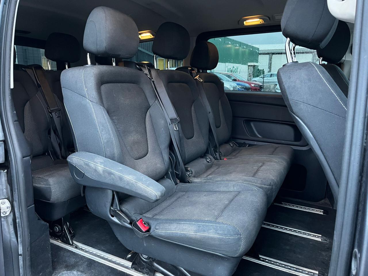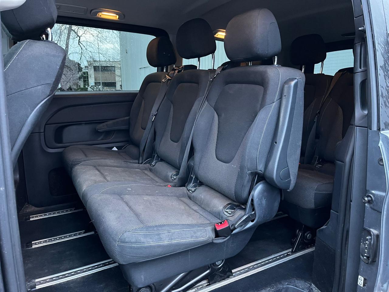 ABS (antiblocage de roues) et BAS (freinage d'urgence assisté)ADAPTIVE BRAKE avec aide au démarrage en côteAllumage automatique des projecteursAPA (Aide au Parking Active) avec caméra 360° : système d'aide au stationnement avec radar de proximité avant et arrière, fonction manœuvres automatiques et 4 caméras (avant, arrière et côtés)Attelage : pré-équipement électrique pour l'installation ultérieure d'un attelageAttention Assist : système de détection de somnolenceBaguettes de seuils de portes éclairées avec monogramme Mercedes-BenzBoîte à gants verrouillableBoîte de vitesses automatique à 7 rapports 7G-TRONIC PLUS avec fonction "Stop/Start ECO"Caméra de recul avec lignes de guidageClé design avec insert chromé, avec ouverture confortClimatisation additionnelle arrièreClimatisation automatique THERMOTRONIC à 2 zonesColonne de direction réglable manuellement en hauteur et en profondeurConciergerie Mercedes me connectCROSSWIND ASSIST : système de correction de trajectoire en cas de vent latéralESP (régulation de comportement dynamique) avec ASR (antipatinage)Hayon électrique EASY-PACKInserts décoratifs en aluminium brosséISOFIX : fixation sièges-enfants arrièreLevier sélecteur DIRECT SELECT avec palettes de commande au volantPack BlueEFFICIENCYPack d'assistance de trajectoirePack Design AvantgardePack rétroviseursPack Technologie PlusPeinture métalliséePorte latérale coulissante droitePorte latérale coulissante gauchePrise 12V à l'avantRadio Audio 20 avec écran couleur 17,8 cm (7"), lecteur CD, interface média USB, Aux, connexion BluetoothRétroviseurs extérieurs à réglages électriquesSièges avant confort réglables en hauteur avec un accoudoirSièges conducteur et passager avant à réglage lombaireSièges individuels arrière (x4) avec deux accoudoirsSuspension et train de roulement sport (-15 mm)Système de rails pour l'ancrage des siègesTEMPOMAT (régulateur de vitesse) et SPEEDTRONIC (limiteur de vitesse)Toit panoramique vitré électrique basculant et coulissantTOUCHPAD : pavé tactile permettant la navigation dans les menus audio, téléphone et médiaVolant gainé cuirVolant multifonction