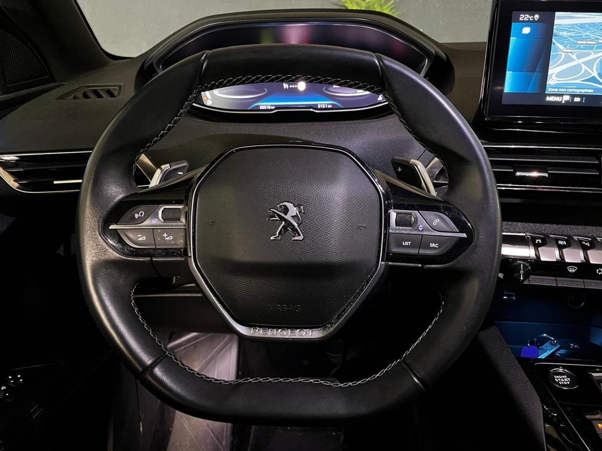 Accès et démarrage mains-libresAccoudoir central avant à ouverture papillon, avec compartiment de rangement éclairé et réfrigérableAir conditionné automatique bi-zone avec aérateurs aux places arrièreAirbags frontaux conducteur et passager adaptatifs (airbag passager déconnectable)Airbags latéraux conducteur et passager avantAirbags rideaux de tête aux places avant et arrièreBanquette rabattable 1/3 - 2/3 (commandes dans le coffre) avec accoudoir et trappe à skisCalandre à damier chroméCoques de rétroviseurs extérieurs Noir Perla NeraDirection assistée électrique, avec colonne de direction réglable en hauteur et profondeur (mécanique)Drive Mode : Choix de 2 modes de conduite (Eco ou Sport)Feux arrière LED 3D avec clignotants arrière défilantsFixation Isofix pour siege passager AVFixations Isofix aux places latérales arrièreFonction 'Mirror Screen' (Apple Carplay / Android Auto)Frein de stationnement électrique avec aide au démarrage en penteHabitacle et ciel de pavillon Noir MistralJantes alliage 18" 'Detroit' bi-ton diamantées Gris StormKit de dépannage pneumatiqueLève-vitres électriques avant et arrière, séquentiels et antipincementLunette arrière surteintée chauffanteNavigation 3D connectée avec reconnaissance vocale, écran tactile capacitif 10" HDPack City 1Pack Eclairage d'ambiancePack Safety PlusPack VisibilitéPeugeot i-Cockpit combiné tête haute numérique reconfigurable,et volant compact multi-fonctionsPlafonnier avant et arrière à LED avec 2 spots de lecturePrises 12V (x3 : zone connectique, arrière de console et coffre)Projecteurs 'Peugeot LED Technology' avec feux diurnes à LED sous projecteursRégulateur et limiteur de vitesseRétroviseur intérieur électrochromeRétroviseurs extérieurs électriques et dégivrants, rabattables électriquement,éclairage d'accueil à LED,témoin de surveillance d'angles mortsSellerie TEP & Tissu 'Colyn'Siège conducteur avec réglage lombaireSièges avant réglables en hauteurToggle Switches' chromés (touches 'piano' d'activation des fonctions de l'écran tactile)Vitres latérales AR surteintéesVolant en cuir Fleur Mistral