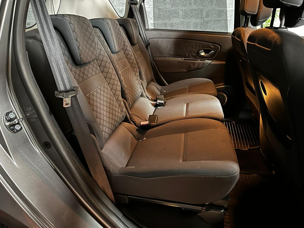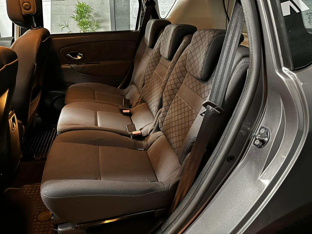 3 sièges de 2è rang, individuels, extractibles, dossiers rabattables et inclinables, fonction portefeuilleABS avec aide au freinage d'urgenceAirbags frontaux conducteur et passager adaptatifs (airbag passager déconnectable)Airbags latéraux thorax/abdomen/bassin conducteur et passager avantAirbags rideaux de têtes aux places avant et arrièreAllumage automatique des projecteursAllumage et extinction progressifs de l'éclairage intérieur commandés par la carte RenaultAntidémarrage électronique codé activé par transpondeurAppuis-tête réglables en hauteur à toutes les placesBoîte à gants éclairée et réfrigéréeCarminat TomTomCendrier nomade et allume cigare (prise 12 volts)Climatisation régulée bi-zone, filtre d'habitacle et aérateurs latéraux au rang 2Condamnation automatique des ouvrants en roulantConduits de chauffage au rang 2Contrôle dynamique de trajectoire (ESP)Crochets (x4) d'arrimage des bagages dans le coffreDirection à assistance variable électriqueEclairage d'extérieur d' accompagnementEnjoliveurs de roues 16" CompléaEssuie-glace à déclenchement automatiqueFrein de parking assistéLève-vitres avant et arrière électriques, à impulsion avec dispositif anti-pincementOrdinateur de bord (7 fonctions)Poches aumônières au dos des sièges avant (1 en bas, 2 en haut)Prise 12V dans le coffreProjecteurs antibrouillardRadioSat Classic, CD MP3, Bornier audio intégré en planche de bordRégulateur et limiteur de vitesseRétroviseurs extérieurs couleur carrosserieRétroviseurs extérieurs électriques et dégivrantsSiège conducteur à réglage lombaireSiège conducteur réglable en hauteurSiège passager avant rabattableSystème de fixation ISOFIX 3 points pour siège enfant aux 3 places arrière rang 2Tableau de bord à écran couleur personnalisable à technologie TFTTablettes aviation au dos des sièges avantTapis de sol carbone très foncéTrappes de rangement sous les pieds avant et arrièreVolant réglable en hauteur et en profondeur