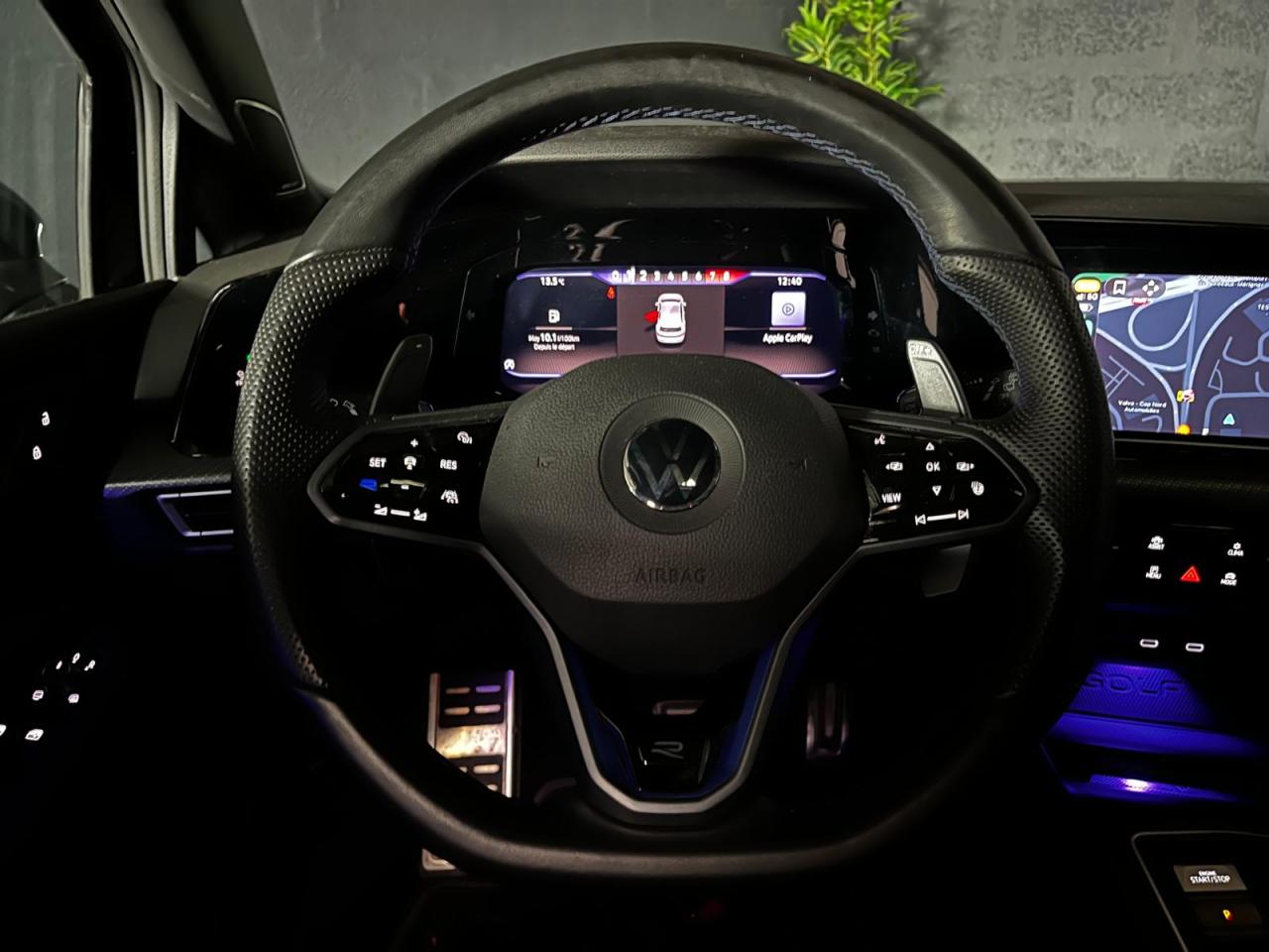 ‘Keyless Access Advanced’ sans alarme : Système de verrouillage/déverrouillage et de démarrage sans clé2 interfaces USB-C à l'avant et 2 prises de chargement USB-C derrière l’accoudoir pour les passagers arrière7 haut-parleursApp-Connect sans filApplications décoratives "Carbon Grey" pour le tableau de bord et les revêtements de porte à l'avantAssistant de changement de trajectoire "Side Assist"Banquette arrière rabattable 2/3 - 1/3 avec trappe à skisCâble adaptateur USB-C vers USB-AChâssis sport spécifique ‘R’Climatiseur "Air Care Climatronic" 3 zones et filtre anti-allergène et éléments de commandes à l'arrièreDiffuseur arrière spécifique ‘R’ laqué noirDigital Cockpit Pro avec ‘R-View’ permettant d’afficher : puissance, couple, pression de suralimentation, compte-tours et accélèromètreDirection progressive spécifique ‘R'Double sortie d'échappement chromée à gauche et double sortie d'échappement chromée à droiteFatigue Detection : Système de détection de fatigue du conducteurFixation pour siège enfant ISOFIX (arrière, x2)Front assist avec freinage d’urgence et détection de piétonsInterface Bluetooth pour téléphone portable (mains-libres)Interface téléphonique avec fonction de charge inductiveLane Assistant : assistant de maintien dans la voieMonogrammes ‘R’ sur la calandre et le hayon, badges ‘R’ sur les ailes avantPack Travel Assist: combinaison du Lane Assist, du Side Assist, du Régulateur de distance et de l'Emergency Assist qui interagissentPack visibilitéPark Assist : Système d'assistance au stationnement en créneau et en batailleParkPilot : Système d’aide au stationnement avant/arrière avec signaux sonores et visualisation de la distance des obstacles sur l’écranPréparation We Connect et We Connect PlusProjecteurs antibrouillard dans le bouclier avant et feux de braquageProjecteurs IQ.Light - Matrix LEDRear Assist : Caméra de recul avec visualisationRéception radio numérique DAB+Régulateur de vitesse adaptatif et prédictif 'ACC' jusqu’à l’arrêt completRégulateur électronique de couple MSRRétroviseurs extérieurs rabattables et réglables électriquement, avec fonction mémoire et dégivrage séparéSélection du profil de conduiteSièges sport à l’avant spécifiques ‘R’ avec appuis-tête intégrés, sellerie en tissu ‘Sardegna’ et microfleece ‘ArtVelours'Sign Assist: Reconnaissance des panneaux de signalisation et affichage sur le ‘Digital Cockpit’ et l’écran du système de radionavigationSystème Navigation & Infotainment ‘Discover Media’ avec «Services de streaming et radio via Internet»Système Start/ Stop avec récupération d'énergie de freinageTechnologie Car2XTransmission ‘4MOTION’ avec repartition vectorielle de couple ‘R-Performance’Verrouillage centralisé avec télécommande à fréquence radio par clé rétractableVitres arrière et lunette arrière surteintées à 65%Volant multifonction en cuir ‘R-Performance’, chauffant, avec touche ‘R’ rétroéclairée en bleu et palettes au volant plus grandesXDS : Système agissant comme un différentiel autobloquant électronique permettant une meilleure motricité en courbe grâce à une répartition optimale de la puissance et du couple sur les roues avant
